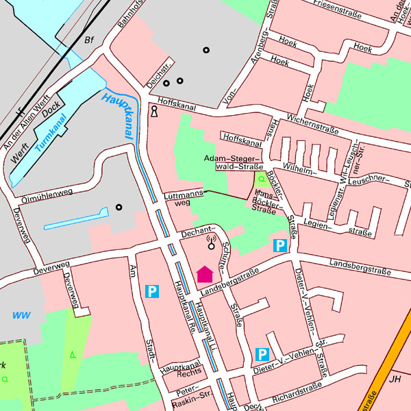 Das Amtsgericht verfügt über umfangreiche kostenlose Parkmöglichkeiten: Ein landeseigener Parkplatz befindet sich direkt hinter dem Amtsgericht an der Landsbergstraße. An der Dechant-Schütte-Straße befindet sich ein weiterer landeseigener Parkplatz. Darüber hinaus besteht die Möglichkeit an der Straße "Am Hauptkanal" (vor dem Amtsgericht) zu parken. In den Sommermonaten ist die Durchfahrt an der Straße "Am Hauptkanal" nicht zugelassen.